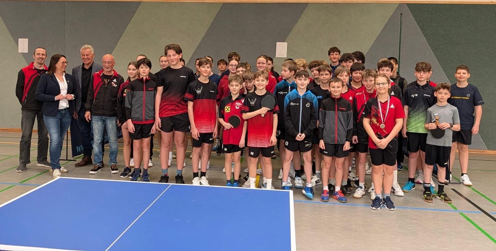 Sektionsleiter Günter Eisele konnte am Sonntag, 18. Mai 2025 26 Kinder und Jugendliche (9 Mädchen, 17 Burschen) in der Mittelschule Völs zur Tiroler Tischtennis-Meisterschaft U17 2025 begrüßen.